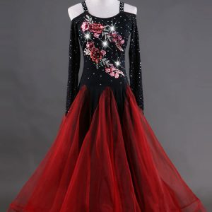 Ballroom Dance Costume Women Organza Beading Floral Practice Dancing Dresses