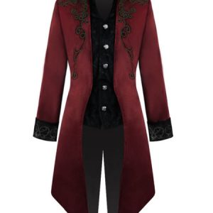 Black Vintage Coat Middle Ages Tuxedo Embroidered Velour Retro Costumes For Man