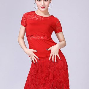 Latin Dance Costume Women Lace Tassels Short Sleeve Dancing Dresses Halloween