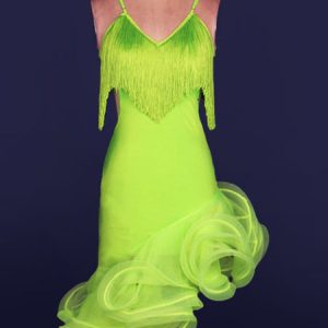 Latin Dance Dress Organza V Neck Spaghetti Strap Fringes Cut Out Irregular Hem Bodycon Latin Dance Costume