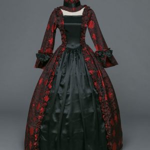 Retro Costume Victorian Dress Baroque Masquerade Ball Gowns Red Floral Long Sleeve Halloween Vintage Costume