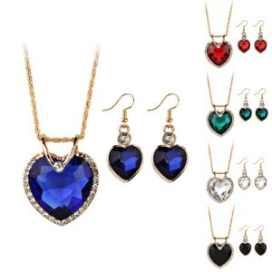 Gold Plated Jewelry Set for Women Crystal Heart Necklace Earrings Jewelry Wedding Accessories