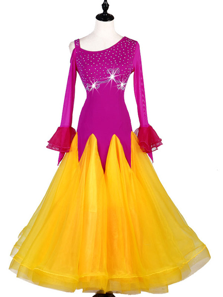 Ballroom Dance Costumes Rhinestone Ruffle Dress Rose Women Dance Wear & Costumes > Costumes > Dance Costumes > Ballroom Dance Costumes