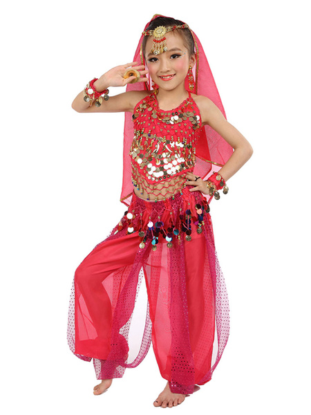 Belly Dance Costume Kids Blue Chiffon Sleeveless Indian Bollywood Dancing Costumes & Costumes > Costumes > Dance Costumes > Belly Dance Costumes