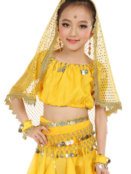 Belly Dance Costume Kids Yellow Chiffon Bollywood Indian Dancing Costumes & Costumes > Costumes > Dance Costumes > Belly Dance Costumes