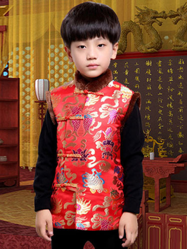 Chinese Costume New Year Red Waistcoat Halloween For Boys & Costumes > Costumes > Kids Costumes > Kids Halloween Costumes