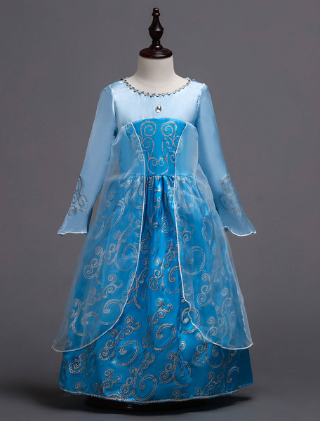 Elsa Costume Halloween Kids Cosplay Dress Frozen Long Sleeve Blue Sequin Dresses