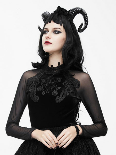 Gothic Costume Top Black Women Long Sleeve Vintage Costumes Halloween & Costumes > Costumes > Retro Costumes > Gothic Costume