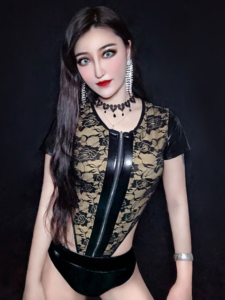 Jazz Dance Costumes Women Lace Zipper Jumpsuit Black 2 Pieces Dancing Wear & Costumes > Costumes > Dance Costumes > Jazz Dance Costumes