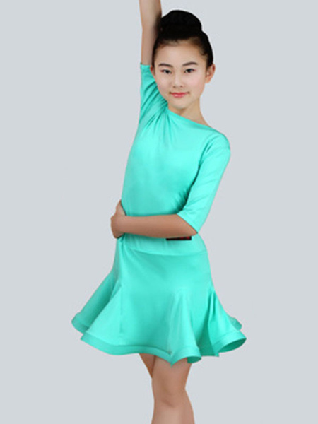 Latin Dance Costume Kids Mint Green Half Sleeve Ballroom Dance Costumes For Girls