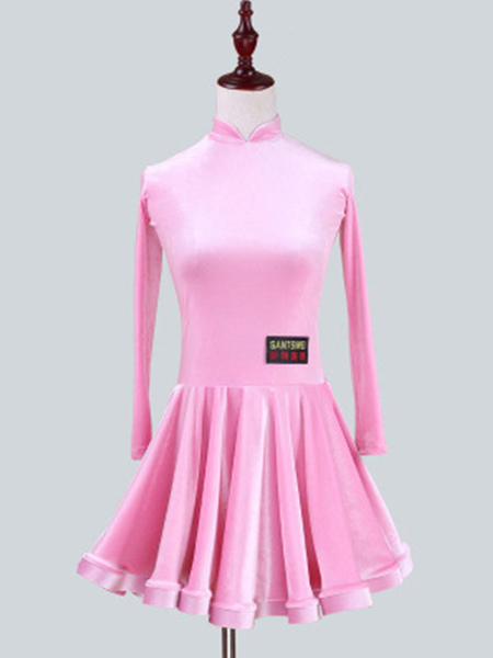 Latin Dance Costume Kids Velvet Long Sleeve Stand Collar Mint Green Ballroom Dance Dresses For Girls & Costumes > Costumes > Dance Costumes > Latin Dance Costumes