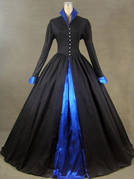 Little Women Costumes Ruffles Stand Collar Button Women 19th Vintage Century Costume