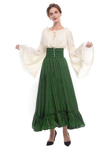 Medieval Renaissance Dresses Victorian Princess Cosplay Costume Women Retro Bell Sleeve Ruffles Maxi Skirt And Top Set Halloween & Costumes > Costumes > Retro Costumes > Retro Costumes For Woman