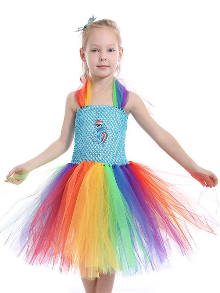 Rainbow Unicorn Dresses Baby Girls Halloween Costume Princess Kids Tutu Fancy Dress With Headband & Costumes > Costumes > Kids Costumes > Kids Halloween Costumes