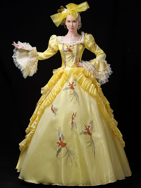 Yellow Retro Costumes Lace Ruffles Embroidered Marie Antoinette Costume Dress Rococo Style Party Prom Dress Halloween & Costumes > Costumes > Retro Costumes > Retro Costumes For Woman